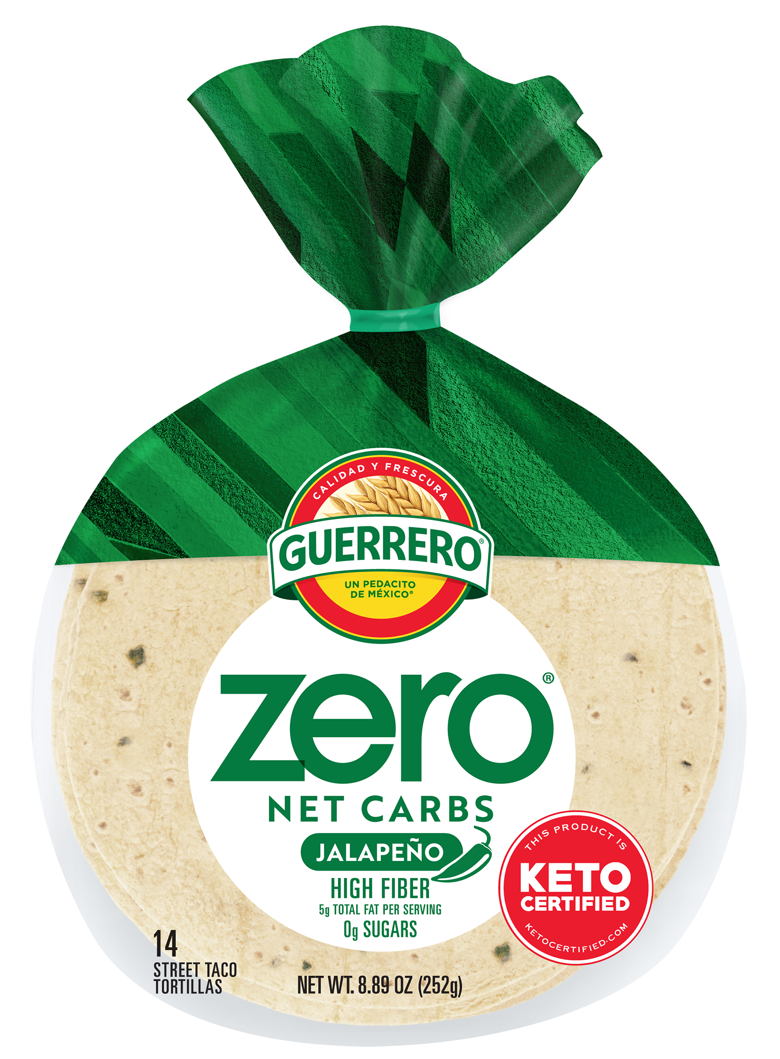 With carbs out of the way, your goals can be that much closer! Guerrero Zero Net Carbs Jalapeno Tortillas have zero net carbs, zero sugar, and all the flavor you’ll need to get where you want to be. This keto-certified tortilla makes tacos, quesadillas and more a better-for-you possibility.